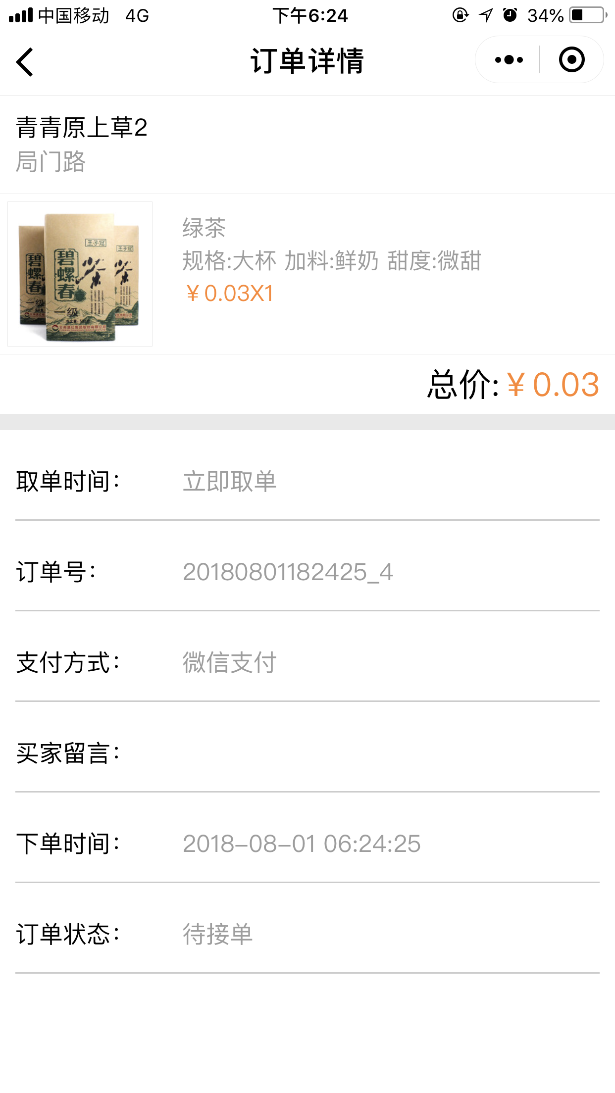 5.在“会员中心”中—“手机点单”中可以看到所有的订单详情,如图所示: